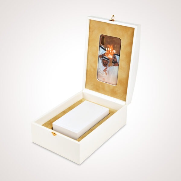 ارتق بتجربة الهدايا الخاصة بك مع صندوق الVIP الأبيض لدينا، المزين بمقابض ذهبية فاخرة. مصمم ليبث الفخامة، يضيف لمسة من التطور إلى أي مناسبة خاصة